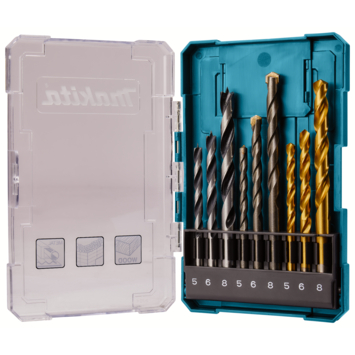 De Makita 9-delige boorset hout metaal steen is een complete set voor veelvoorkomende boorklussen. De set wordt geleverd in een afsluitbare kunststof cassette met een handig uitschuifbaar ophangsysteem zodat je de boren overzichtelijk en veilig kunt opbergen. In de cassette vind je negen spiraalboren in diameters die geschikt zijn voor uiteenlopende toepassingen.
