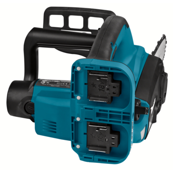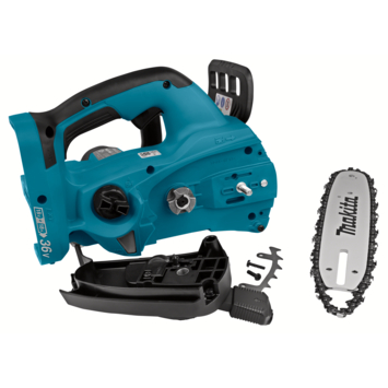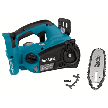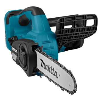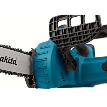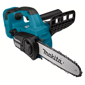 De Makita accu kettingzaag DUC252Z is een krachtige kettingzaag die het vermogen levert van een 36V accu terwijl het gebruik maakt van twee 18V accu's. De machine maakt onderdeel uit van het Makita 18V accu platform en wordt geleverd zonder accu's. Dankzij de top-handle is de machine uitermate schikt voor snoei- en zaagwerk. De kettingzaag is uitgerust met automatische kettingsmering een een elektrische motorrem. Dankzij de elektrische motor is de machine goedkoop in onderhoud doordat je weinig onderhoud hebt en geen brandstof hoeft te kopen. Je kan de ketting van de Makita accu kettingzaag DUC252Z makkelijk vervangen zonder gebruik te maken van gereedschap.