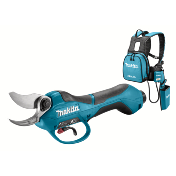 De Makita accu snoeischaar DUP361ZN knipt moeiteloos door takken heen met een dikte van maximaal 33 mm. Dankzij het ergonomische draagstel voor de accu's is de machine comfortabel om te gebruiken.