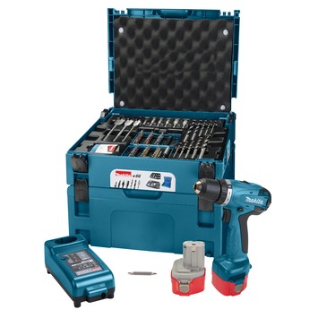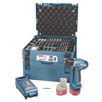 De Makita 12V Boor-/schroefmachine met 66-delige accessoiresset 6271DWPJX3 is perfect voor de beginnende klusser. De machine heeft een 12Volt NiCd-accu van 1.3Ah. Het is een lichte machine met twee snelheden en een toerental van maximaal 1300 toeren per minuut. De 6271DWPJX3 is compact en compleet, want hij wordt geleverd met een M-box opbergkoffer, twee NiCd-accu’s, een 30 minuten snellader en een 66-delige accessoiresset. Deze set bestaat onder andere uit boren, speedboren, dopsleutels, bitjes, een rolbandmaat en een mes. De M-box opbergkoffer kunt u koppelen met andere Makita-machines die ook in een dergelijke koffer worden geleverd. Zo heeft u al uw gereedschap netjes opgeruimd en snel bij de hand.