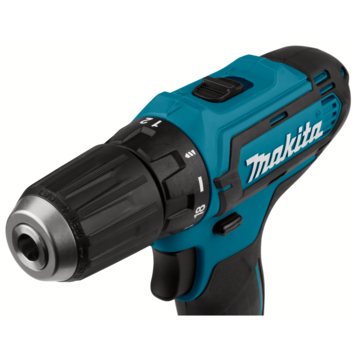 Een boor-/schroefmachine gebruik je voor het boren en indraaien van schroeven in hout, metaal, aluminium en kunststof. De Makita accu boormachine DF331DSAE voor de regelmatige klusser weegt slechts 1,1 kg. Dat maakt hem zeer geschikt voor kleine en fijne bewerkingen. Door de snelspanknop met asblokkering kun je bits en boortjes heel gemakkelijk met één hand plaatsen en verwijderen. De machine heeft twee mechanische versnellingen: hoog en laag. Hierdoor is hij ook te gebruiken met een speedboor (tot 8 mm), houtboor (10 mm), metaalboor (tot 10 mm) en een gatzaag (tot 21 mm). De variabele toerenregeling zit in de schakelaar. Je kan zo rustig starten met schroeven of boren en het voorkomt verspringing van schroeven. Makita levert de DF331D in een Mbox, samen met twee 2,0 Ah accu's met laadindicator en een snellader. Die is voorzien van luchtkoeling waardoor de accu's in slechts 30 minuten weer opgeladen zijn.