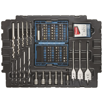 De accuboormachine wordt geleverd met 1,3Ah accu’s die u in 60 minuten kunt opladen. U kunt de boor-/schroefmachine, accu’s en de 66-delige accessoires set opbergen in twee professionele M-boxen die u kunt koppelen aan andere Makita opbergboxen. De DF347DWJX4 boor-/schroefmachine is een complete set met voldoende boren en bits en u kunt hem ook nog eens netjes opbergen.