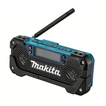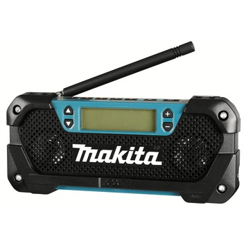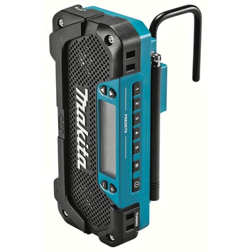 Naast de accu boormachine zit er ook een draagbare radio in de combiset. De Makita draagbare radio DEAMR052 ondersteunt FM en AM radio en heeft een AUX-in poort zodat je telefoon aan kan sluiten.
