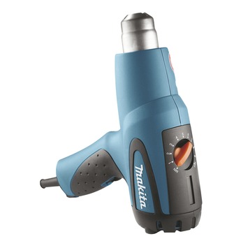 Dit heteluchtpistool van Makita is te gebruiken voor het afbranden van verf, maar er zijn veel meer toepassingen. Met de veelzijdige HG551VK kun je ook krimpkousen samenkrimpen, bevroren waterleidingen ontdooien, pvc, acryl of polystyreen buigen of gesoldeerde verbindingen eenvoudig losmaken. Gebruik het pistool voor solderen, voor snel drogen of voor het aanbrengen van fineer. De Makita HG551VK is klein en licht, maar heeft met 1800 watt een stevig vermogen. Het temperatuurbereik is 100°C tot 550°C en is heel eenvoudig zelf te regelen via 10 standen. Je kiest het juiste opzetstuk en de juiste temperatuur en je kunt er meteen mee aan de slag. Dankzij een gewicht van slechts 0,6 kg en de ergonomische softgrip kun je er ook heel comfortabel mee werken. Dit heteluchtpistool kan in de koelstand zelfstandig staan. Let op dat je het heteluchtpistool goed laat afkoelen voordat je hem weer terugplaatst in de koffer.