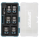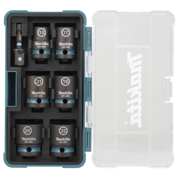 Elke dop heeft een kenmerkende Makita teal band met duidelijke maatmarkering zodat je altijd snel de juiste maat kunt kiezen. De bijgeleverde kunststof cassette houdt alle doppen overzichtelijk en goed beschermd waardoor je de set eenvoudig mee kunt nemen of op kunt bergen.