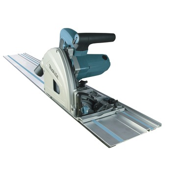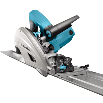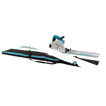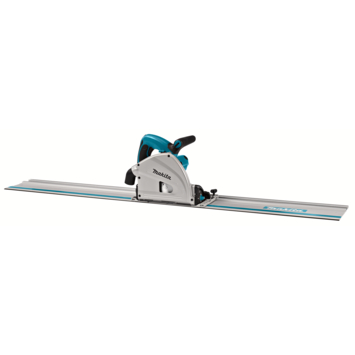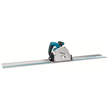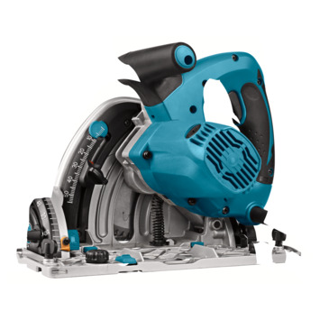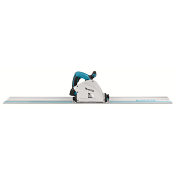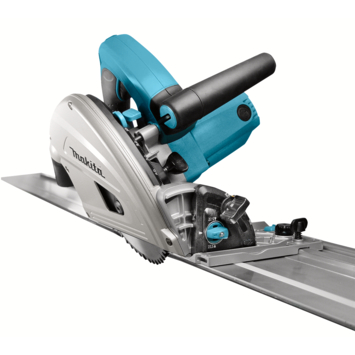 Plaatmateriaal, de Makita SP6000J1X invalzaag zet daar graag zijn tanden in. Zowel bij volledig doorzagen als bij invalzagen bewijst de SP6000J1X zijn talenten. Loepzuiver zagen is z’n ambitie. Door de geleiderail die standaard meegeleverd wordt kun je zeer nauwkeurig recht zagen. Daarnaast is de zaag uitgerust met een voorritsfunctie. In combinatie met het juiste zaagblad, zorgt deze functie ervoor dat je echt splintervrij zaagt. De ingebouwde soft start zorgt voor een rustige aanloop. De invalcirkelzaag SP6000J1X heeft een 165 mm zaagblad. Dat betekent dat je plaatmateriaal tot 56 mm dik kunt zagen. Wil je verstek zagen? Dat kan. De invalcirkelzaag is kantelbaar van -1° tot 48° met precieze aanslagen op 0°, 22,5° en 45°. De maximale plaatdikte dat je kunt zagen is 40 mm onder een hoek van 45°. Dankzij de ingebouwde vergrendeling kantelt de zaag niet van de rail als deze onder een hoek van 45° gebruikt wordt.