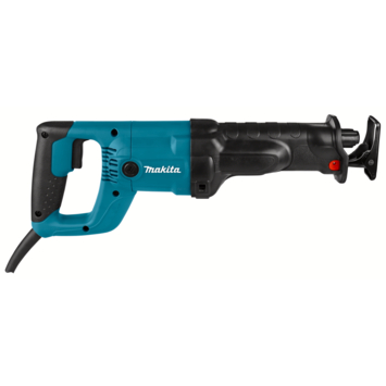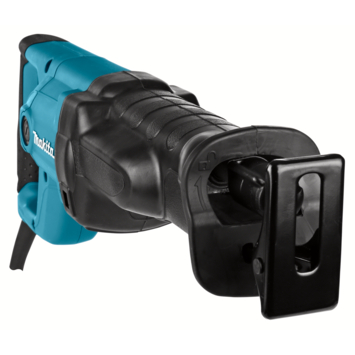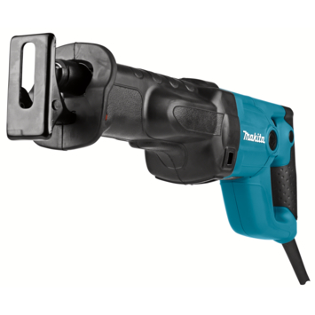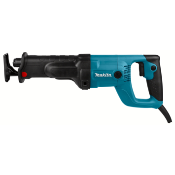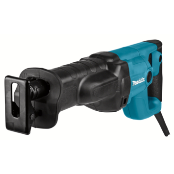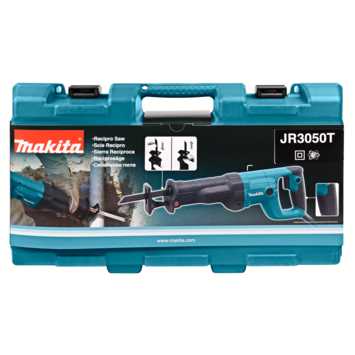 Zaag met de Makita reciprozaag JR3050T alles in stukken. Dikke balken, kozijnen, takken van een boom en buizen zaagt de reciprozaag moeiteloos door. Hij is geschikt voor intensief gebruik bij sloop-, renovatie- en verbouwwerkzaamheden. De klus valt of staat met het juiste reciprozaagblad. In houten balken of kozijnen willen nog weleens spijkers zitten. Dan is het prettig voor je polsen om een zaagblad te hebben die zowel door hout als metaal zaagt. Dat voorkomt vervelende verrassingen. De reciprozaag JR3050T is bijzonder gebruikersvriendelijk vanwege zijn grote en stevige D-handgreep met softgrip. Dat zorgt ervoor dat de machine goed in je hand ligt en dat je meer controle hebt over de uitvoering van de te klaren klus. De aanslag (voet) kun je gereedschapsloos in 5 posities verstellen om de juiste diepte in te stellen. Wil je het zaagblad wisselen, dan kan dat eenvoudig met slechts één vingerbeweging.