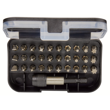 31-delige Makita schroefbitset bestaande uit 30x schroefbits 25mm en een magnetische bithouder in handige kunststof meeneemverpakking.