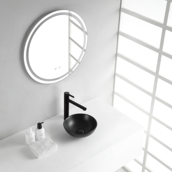 De Drova opzetwastafel in mat zwart combineert eenvoud en stijl. Met een diameter van 28 cm en hoogte van 10 cm past hij goed op verschillende oppervlakken zoals een houten blad. Keramiek zorgt voor een solide en makkelijk te reinigen oppervlak. De waskom heeft geen overloop en wordt geleverd zonder kraan, waste en sifon. Zo stel je zelf je ideale wastafel samen. De matte zwarte kleur geeft de waskom een stoer karakter zonder te overheersen.