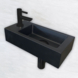 Op zoek naar een fonteinset die weinig ruimte inneemt en er strak uitziet? Deze Ondine S mini fonteinset in mat zwart is compact, compleet en opvallend modern. De fontein van keramiek is klein van formaat, met een kraangat links en een plateau aan dezelfde kant. Ideaal als je daar je zeepje of handdoek kwijt wilt. De toiletkraan past perfect bij de fontein. Dankzij het kleine formaat en de lange greep is de kraan prettig in gebruik, ook voor kinderen. De sifon is laag van model en net als de kraan uitgevoerd in mat zwart. Dat geldt ook voor de vaste waste, die altijd open blijft. Alle onderdelen zijn op elkaar afgestemd en zorgen samen voor een strakke, rustige uitstraling. Je bevestigt de fontein eenvoudig aan de muur met de bijgeleverde plugboutenset.