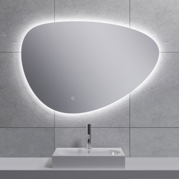 De Huevo spiegel combineert luxe verlichting met slimme functies, in een opvallend asymmetrisch ontwerp. Rondom de spiegel loopt een LED-lichtbalk die je eenvoudig aanstuurt via de touch-button in het glas. Met deze knop stel je de lichtsterkte en kleurtemperatuur naar wens in, van warm tot koel wit. Je instellingen blijven bewaard zolang je de spiegel bedient via de touch-button. Handig als je ’s ochtends snel hetzelfde licht nodig hebt. De LED-verlichting schakelt automatisch uit na één uur. Tegelijk schakel je met dezelfde knop ook het verwarmingsmatje in. Zo voorkom je condensvorming na het douchen. Eerst op het midden van het glas, en na verloop van tijd ook daarbuiten. De spiegel geeft 955 lumen en is voorzien van energielabel A.