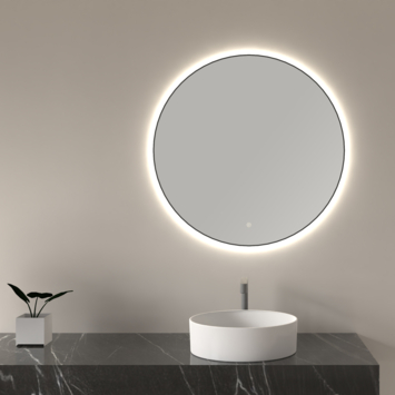 Met deze grote ronde spiegel van 100 cm voeg je eenvoudig sfeervol licht toe aan je badkamer. De indirecte LED-verlichting rondom het dunne, mat zwarte frame zorgt voor zacht en gelijkmatig licht. Via de touch sensor aan de voorkant stel je zowel de lichtsterkte als de kleurtemperatuur in, van warm tot koel wit licht (3000-6500 kelvin). Zo pas je het licht gemakkelijk aan, bijvoorbeeld helder voor je ochtendroutine of zacht en warm voor ontspanning in de avond. De spiegel is gemaakt van 4 mm dik kopervrij glas, speciaal ontworpen voor vochtige ruimtes zoals de badkamer. De LED schakelt na een uur automatisch uit, wat energie bespaart. Dankzij de spatwaterdichte IP44-certificering en het meegeleverde bevestigingsmateriaal hang je de spiegel snel en veilig op.