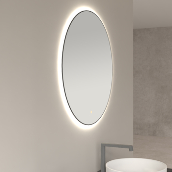 Met deze ronde spiegel creëer je makkelijk een warme en sfeervolle badkamer. De indirecte LED-verlichting rondom het dunne zwarte frame geeft zacht licht. Je bedient het licht eenvoudig via de touch sensor aan de voorkant. Daarmee pas je niet alleen de sterkte aan, maar ook de kleurtemperatuur van 3000 tot 6500 kelvin. Zo stel je het licht precies in zoals je wilt, bijvoorbeeld zacht en warm voor ’s avonds of helder voor je ochtendroutine. De spiegel heeft kopervrij glas van 4 mm, waardoor hij goed tegen vocht kan. Daardoor is hij ideaal voor in de badkamer. De LED gaat automatisch uit na een uur, wat energie bespaart. Met de spatwaterdichte IP44-certificering en het meegeleverde bevestigingsmateriaal hangt de spiegel snel en veilig aan de muur.