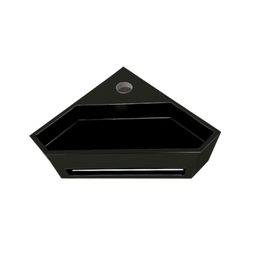 Deze mat zwarte Silara hoekfontein geeft je toiletruimte een krachtige, moderne uitstraling. De driehoekige vorm van 35 x 35 cm past netjes in de hoek en bespaart ruimte. Ideaal voor een klein toilet of als je een strak interieur hebt. Onder de fontein zit een geïntegreerde handdoekhouder, zodat je handdoek altijd binnen handbereik hangt. Het oppervlak is gemaakt van solid surface: een sterk composiet dat goed bestand is tegen vocht, krassen en vlekken. Je hoeft geen waste te plaatsen. De afvoer loopt af, zodat water vanzelf wegloopt. De fontein heeft een kraangat in het midden. Je kiest dus zelf welke kraan en sifon je erbij combineert. Bevestiging is hangend, plugbouten zijn niet inbegrepen.