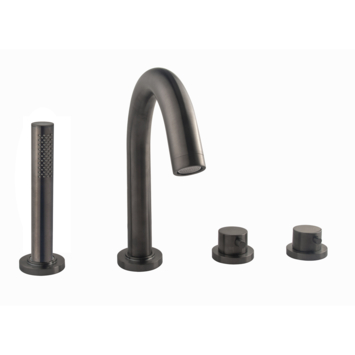 Laat jouw bad direct opvallen met de Marho Valdra badrandkraan in gun metal. Door de handige indeling met vier losse onderdelen bedien je al je baddiensten makkelijk vanaf de rand. De thermostaatknop geeft je altijd de gewenste temperatuur, terwijl je met één omstelknop snel wisselt tussen de brede baduitloop en de verzonken handdouche. Ideaal voor snelle afspoelmomenten. De hoge, draaibare uitloop geeft veel vrijheid tijdens het tappen. Het mat donkere gun metal past perfect bij een industriële of moderne badkamer en combineert mooi met andere zwarte of antraciete details. De onderdelen liggen netjes op de badrand zonder losse slangen in het zicht. Voor installatie is het Bib inbouwdeel 4-gats (artikel 350760) nodig, geschikt voor een aansluiting van 1/2". Met deze set haal je luxe en gemak in huis, precies zoals jij het wilt.