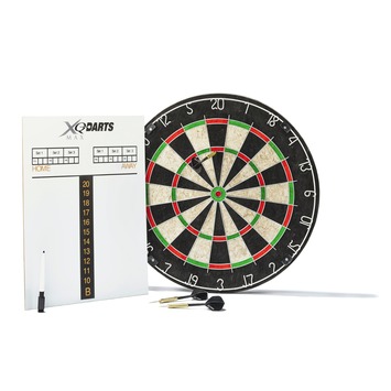 Met het Masterdarts dartboard startersset kan de sfeer van de populaire dartsport in huis gehaald worden. De set bevat een 18 x 1-1/2 Bristle Dartbord met ronde draad, 2 set dartspijlen van 18 gram, scorebord, markeerpen en een wisser.