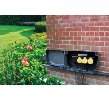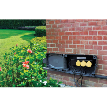 De Masterplug kabeldoos biedt de mogelijkheid om een extra stroompunt aan te leggen buiten. Het is mogelijk om de kabeldoos te installeren aan een achterwand. De kabeldoos heeft voorgeperforeerde gaten voor installatie.