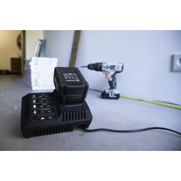 Laad al je accu’s in bijna de helft van de tijd op, met de 4A snellader van Batavia. Met de 4A snellader, kun je alle accu’s binnen het Maxxpack accuplatform opladen. Het Maxxpack accuplatform is een flexibel 18 volt Li-ion platform, voor binnen en buiten. Met Maxxpack kun je meer dan 50 machines gebruiken met slechts één accu en oplader.