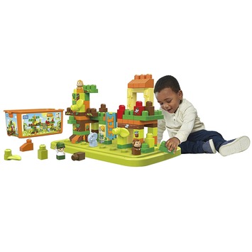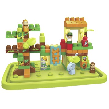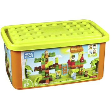 Bouw je eigen jungle met deze 87 delige set inclusief 4 Block Buddies, waaronder 2 apen en een olifant. Verpakt in een herbruikbare bak met deksel. Deze 87-delige speelset bevat gewone blokken en blokken met speciale vormen, kleuren en prints. Handige bak voor snel en eenvoudig opbergen. Compatibel met alle Mega Bloks first builders-sets. Geschikt voor kinderen vanaf 1 jaar.