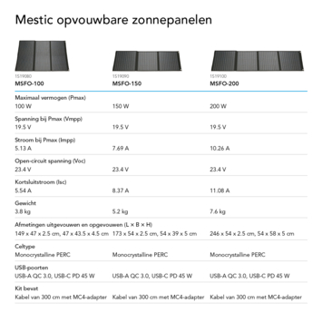 - Geschikt voor MC4-zonnepanelen