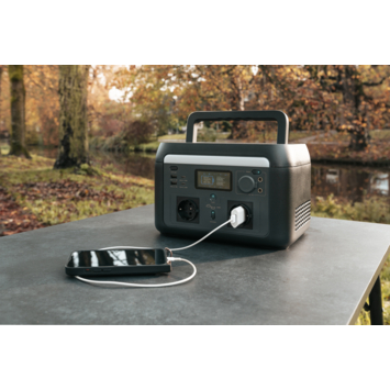Je hebt keuze uit verschillende aansluitingen zoals AC, DC, USB-A en USB-C. Daardoor laad je eenvoudig je telefoon, laptop of verlichting op en sluit je bijvoorbeeld ook een koelbox aan. Zo fungeert de powerstation als centrale stroomvoorziening op de camping of op de boot. Met een gewicht van 6,6 kg neem je hem nog steeds goed mee.