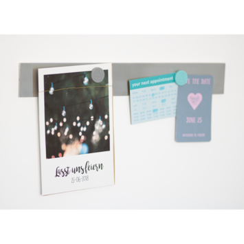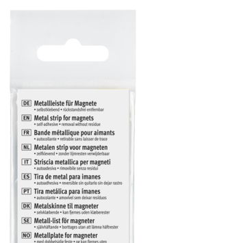 Metalen strip van hoge kwaliteit, inclusief zelfklevende verwijderbare MEGASTRIPS voor bevestiging. Met behulp van een krachtige magneet kunnen er notities, foto's en andere voorwerpen aan worden bevestigd. Op die manier dient de zelfklevende metalen strip als een veelzijdige bevestigingsmogelijkheid.