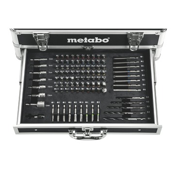 De Metabo accuboormachine BS18 set is ideaal voor alle klussen in en rondom je huis. De 18 volt boormachine is geschikt voor zowel hout als staal. Wisselen van bit of boor is erg makkelijk dankzij de snelspanboorkop, het kan helemaal gereedschapsloos. De machine heeft twee versnellingen, hoog en laag. De krachtige 2.0Ah Li-Ion accu's zorgen ervoor dat de machine geen tekort aan kracht heeft. Je laadt de accu's vol binnen 80 min. De Metabo accu boormachine 18V wordt geleverd met twee 18V 2.0Ah accu's en een 100-delige accessoires set bestaande uit allemaal verschillende bits en boren.