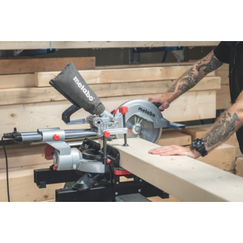 De Metabo KGS 254 M afkortzaag heeft een vermogen van 1800 watt en maakt maximaal 4500 toeren per minuut. U kunt er dan ook moeiteloos mee in hout, houtpanelen en MDF-platen zagen. De afkortzaag heeft een trekfunctie zodat u er ook dikkere en bredere balken tot maximaal 305mm breedte en 92mm hoogte mee kunt zagen. Deze Metabo afkortzaag heeft een geïntegreerde laser waarmee u recht blijft zagen én is voorzien van een helder led-werklicht om uw zaagbereik goed bij te lichten. Dankzij de zaagdieptebegrenzer kunt u gemakkelijk de zaagdiepte bepalen. Ook in verstek zagen gaat eenvoudig met de KGS 254 M tot 47graden aan beide kanten. Voor de meest voorkomende hoekmaten heeft deze afkortzaag vijf vaste punten. De geïntegreerde spaanopvangtrechter zorgt ervoor dat spanen en stof doeltreffend worden afgezogen; goed voor uw gezondheid en uw werkplek blijft schoon. De afkortzaag wordt geleverd met een zaagblad voor hout. Kortom, de Metabo KGS 254 M is de ideale afkortzaag van professionele kwaliteit voor elke klus in en om het huis.