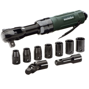 De Metabo DRS 68 SET perslucht ratelschroevendraaier is geschikt voor diverse werkzaamheden (68Nm), zoals reparaties aan de auto en in de staalbouw. De ratelschroevendraaier is compact, ergonomisch en weegt slechts 1,18kg. Daardoor is deze schroevendraaier makkelijk hanteerbaar. U kunt het toerental zelf regelen met behulp van de ingebouwde toerentalregeling. U heeft dus altijd het juiste toerental voor de betreffende klus. Aan de zijkant van de behuizing bevindt zich een draaibare luchtuitlaat voor de afvoer van de perslucht. Deze Metabo DRS 68 SET perslucht ratelschroevendraaier is geschikt voor maximaal 6,2bar.