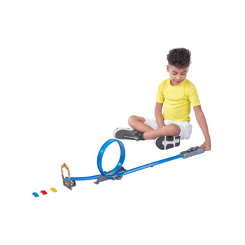 Deze Road Rampage-baanset zit boordevol actie en vernietiging! Lanceer je Bone Crusher met de krachtige Metal Machines-lanceerder, raas langs de 360 ¿¿graden looping en spring over de auto's.. of OP ze om ze volledig aan stukken te slaan! Maak je geen zorgen, je kunt ze weer in elkaar zetten om verschillende stunts en trucs uit te proberen! Wordt geleverd in windowbox. Geschikt voor kinderen vanaf 4 jaar.