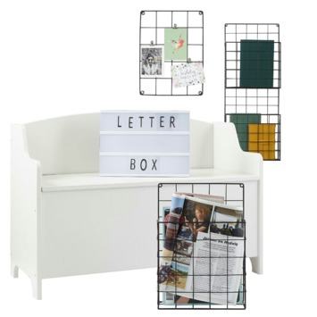 Dit metalen wandrek is een echte eyecatcher aan de muur. Geleverd met clips en haakjes voor al je herinneringen