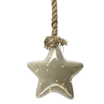 De Micro led ster touw is zeer geschikt om kerstsfeer aan te brengen. Een scheepstouw met een doorzicht rookglazen ster waarin led lampjes zorgen voor de verlichting. Werkt op batterijen en heeft een timerfunctie, 6 uur aan 18 uur uit.