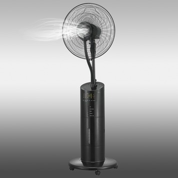 De multifunctionele mistventilator Modena is een bron van verfrissing door zijn fijne waternevel. Het is met deze ventilator niet alleen mogelijk om de kamer te verkoelen maar ook om de kamer te bevochtigen. De mistventilator wordt geleverd in een zwarte kleur en heeft naast een draaifunctie ook 3 verschillende standen met een timer zodat hij vanzelf uitgaat mocht je dit zelf vergeten. Wordt geleverd met afstandsbediening zodat hij vanaf een afstand te bedienen is. Met een snoer van 150 cm is hij makkelijk ergens te plaatsen. De perfecte ventilator voor het hele jaar door.