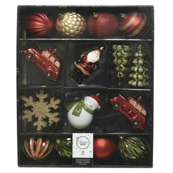 Dit prachtige pakket bevat 25 feestelijke hangers in klassieke kerststijl. Ze zijn gemaakt van kunststof waardoor ze zo goed als onbreekbaar zijn. Geen keuzestress meer, de keuze hebben wij al voor je gemaakt en samengebracht in dit feestelijke pakket. De verschillen de figuren zijn voorzien van een hangertje zodat je direct kunt starten met decoreren.