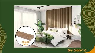 Deze montagekit bestaande uit schroeven en brackets gebruik je in combinatie met de duurzame CanDo green Wood Decowall vuren of mdf eiken latten. Zo creëer je eenvoudig een natuurlijke en warme sfeer in elke ruimte van je huis. Je kunt een hele wand met deze latten bekleden maar ook een gedeelte van de wand bijvoorbeeld achter de tv of eettafel geeft al een heel mooi en leuk effect. Één bundel CanDo green Wood Decowall en één montagekit met schroeven en brackets is goed voor 30cm wand of 0,78m2.