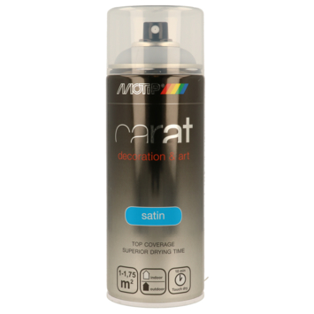 Motip Carat is een zijdeglans lak voor decoratieve doeleinden. Voor het behandelen van behandelde en onbehandelde ondergronden van hout, metaal, aluminium, glas, steen en diverse soorten kunststof. De lak heeft een zeer hoge dekkracht en een duurzame kleur en duurzame glans. De lak is krasvast en stootvast en bestand tegen chemicaliën en weersinvloeden. carat lak heeft een hoog standvermogen en een uitstekende hechting. Inhoudsmaat 400 milliliter.