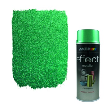 Motip spuitlak metallic groen 400 ml is een sneldrogende acrylaat lak met een goede hechting. De lak is i.c.m. met de juiste grondverf geschikt voor het kleuren van behandelde en onbehandelde ondergronden van metaal, steen, hout, glas en diverse soorten kunststof. De lak is slijtvast, bestand tegen weersinvloeden en zorgt voor een unieke uitstraling. De inhoudsmaat is 400 ml.