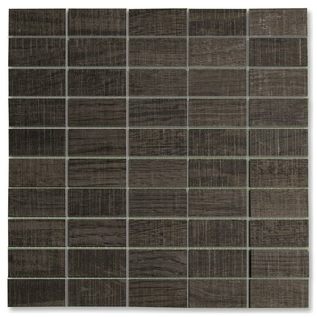 Mozaïektegel Spirit Musk 30x30 cm is een donkergrijze mozaïek met houtlook effect. Passend bij de wandtegel in formaat 20x60.