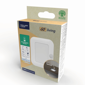 Mobina Push 10 is een witte onderbouwlamp van Müller-licht, ideaal voor bijvoorbeeld onder je keukenkastjes. De draadloze lamp heeft een ingebouwde ledlichtbron van 0.6 watt die zorgt voor een neutraal wit licht met een lichtopbrengst van 50 lumen. De installatie is eenvoudig door een zelfklevende strip.Je kunt de lamp aan- en uitzetten met de grote schakelaar. Aan de zijkant van de lamp is er nog een schakelaar waarmee je de automatische uitschakeltijd kunt instellen: 3 of 15 minuten. Mobina Push 10 is oplaadbaar via de meegeleverde USB-kabel. Volledig opgeladen kan de lamp tot 3 uur branden. De laadtijd bedraagt ook 3 uur. Met de ingebouwde bewegingssensor springt de lamp snel aan.