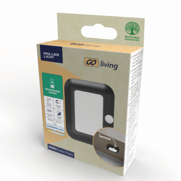 Mobina Push 10 is een zwarte onderbouwlamp van Müller-licht, ideaal voor bijvoorbeeld onder je keukenkastjes. De draadloze lamp heeft een ingebouwde ledlichtbron van 0.6 watt die zorgt voor een neutraal wit licht met een lichtopbrengst van 50 lumen. De installatie is eenvoudig door een zelfklevende strip.Je kunt de lamp aan- en uitzetten met de grote schakelaar. Aan de zijkant van de lamp is er nog een schakelaar waarmee je de automatische uitschakeltijd kunt instellen: 3 of 15 minuten. Mobina Push 10 is oplaadbaar via de meegeleverde USB-kabel. Volledig opgeladen kan de lamp tot 3 uur branden. De laadtijd bedraagt ook 3 uur. Met de ingebouwde bewegingssensor springt de lamp snel aan.