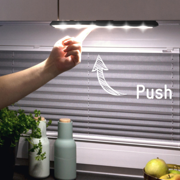 Mobina Push 10 is een zwarte onderbouwlamp van Müller-licht, ideaal voor bijvoorbeeld onder je keukenkastjes. De draadloze lamp heeft een ingebouwde ledlichtbron van 0.6 watt die zorgt voor een koel wit licht met een lichtopbrengst van 50 lumen. De installatie is eenvoudig door een zelfklevende strip.Je kunt de lamp aan- en uitzetten met de grote schakelaar. Aan de zijkant van de lamp is er nog een schakelaar waarmee je de automatische uitschakeltijd kunt instellen: 3 of 15 minuten. Mobina Push 10 is oplaadbaar via de meegeleverde USB-kabel. Volledig opgeladen kan de lamp tot 3 uur branden. De laadtijd bedraagt ook 3 uur.