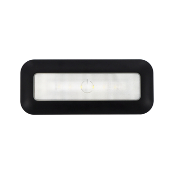 Mobina Push 15 is een zwarte onderbouwlamp van Müller-licht, ideaal voor bijvoorbeeld onder je keukenkastjes. De draadloze lamp heeft een ingebouwde ledlichtbron van 1.5 watt die zorgt voor een koel wit licht met een lichtopbrengst van 100 lumen. De installatie is eenvoudig door een zelfklevende strip.Je kunt de lamp aan- en uitzetten met de grote schakelaar. Aan de zijkant van de lamp is er nog een schakelaar waarmee je de automatische uitschakeltijd kunt instellen: 3 of 15 minuten. Mobina Push 15 is oplaadbaar via de meegeleverde USB-kabel. Volledig opgeladen kan de lamp tot 3 uur branden. De laadtijd bedraagt ook 3 uur.