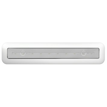 Mobina Push 30 is een witte onderbouwlamp van Müller-licht, ideaal voor bijvoorbeeld onder je keukenkastjes. De draadloze lamp heeft een ingebouwde ledlichtbron van 2 watt die zorgt voor een koel wit licht met een lichtopbrengst van 200 lumen. De installatie is eenvoudig door een zelfklevende strip.Je kunt de lamp aan- en uitzetten met de grote schakelaar. Aan de zijkant van de lamp is er nog een schakelaar waarmee je de automatische uitschakeltijd kunt instellen: 3 of 15 minuten. Mobina Push 30 is oplaadbaar via de meegeleverde USB-kabel. Volledig opgeladen kan de lamp tot 3 uur branden. De laadtijd bedraagt ook 3 uur.