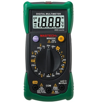 Met de multimeter professional kunt u gelijkstroom, wisselstroom, weerstand, diode, stroomsterkte en temperatuur meten. Deze 600Volt multimeter heeft ook een verbindtester die een geluidsignaal afgeeft wanneer de (goede) verbinding wegvalt.