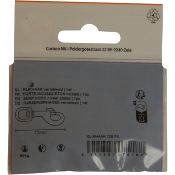 Met de musketonhaak 72mm vernikkeld kun je snel en eenvoudig verbindingen maken. Door het openklikkend deel bevestig je de haak door een lus of ring. Door het openklikkend deel weer los te laten is de musketonhaak goed verzekerd. De musketonhaak is bijvoorbeeld handig te gebruiken om je sleutelbos of pasje aan je broeklus of keycord te hangen. Zo raak je ze niet kwijt. Doorhet vernikkeld metaal wordt corrosie nagenoeg verkomen en de levensduur van de haak verlengd. Kortom, de musketonhaak is een goed hulpstuk om dingen gemakkelijk en snel te bevestigen.