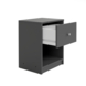 Grijs nachtkastje vrij compact. Kwaliteit van het hout is niet heel stevig.