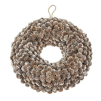 Najaarskrans met dennenappels met een doorsnede van 38 cm. Leuk om bijvoorbeeld op te hangen voor het raam, aan de deur of aan de muur.