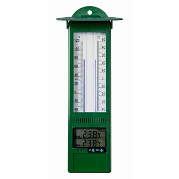 U leest altijd de juiste temperatuur af van deze digitale kunststof min-maxthermometer van Nature met afmetingen van 24x9,5x2,5cm. De digitale thermometer geeft de omgevingstemperatuur weer, zowel mechanisch als digitaal, met behoud van de minimum- en maximumtemperatuur. U bevestigt de min-max buitenthermometer aan de muur. Let op! Niet iedere plek is geschikt. Hangt u de thermometer vol in de zon of juist compleet in de schaduw, dan kan dit de gegevens vervalsen. De vloeistof die in de kunststof buitenthermometer wordt gebruikt is op basis van alcohol. Eventueel kunt u de thermometer resetten, zodat u de gegevens van ieder seizoen opnieuw kunt meten.