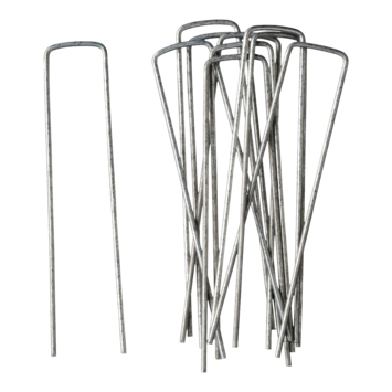 De gronddoekpennen van Nature zijn geschikt voor het vastzetten van gronddoek, antiworteldoek en dergelijken. De gronddoekpennen worden daarom ook wel antiworteldoekpennen genoemd. Maar ook kunstgras, landbouwplastic, slikranden, binnententen en andere doeken zet u ermee vast. De metalen gronddoekpennen zijn 14cm hoog, 3cm breed en hebben een dikte van 3mm. In deze set zitten 10 gronddoekpennen. U steekt de pennen door het doek heen helemaal in de grond en zorgt daarmee voor een stevige bevestiging van het doek. U voorkomt daarmee dat wind vrij spel krijgt en het doek of zeil wegwaait.