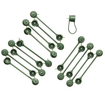 De 15 stuks groene Nature-plantenklemmen van 15mm zijn handige klemmen voor het bevestigen van takken aan een muur. Door takken vast te maken aan een muur zorgt u ervoor dat ze in de juiste richting groeien. De plantenklemmen zijn dan ook ideaal voor het geleiden van klimplanten. De groene kunststof klemmen hebben een klikverbinding die geschikt is voor takken met een diameter tot 15mm. Met de plantenklemmen geeft u klimplanten de nodige steun, zodat ze optimaal kunnen groeien. De verpakking bevat 15 stuks plantenklemmen van Nature.